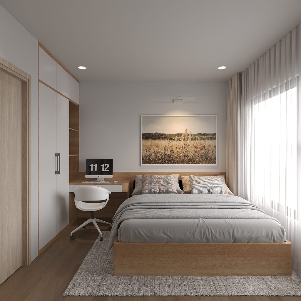 • Nội thất phòng ngủ: Giường, tủ quần áo, bàn trang điểm từ Bento tạo không gian nghỉ ngơi ấm cúng, an toàn cho sức khỏe.