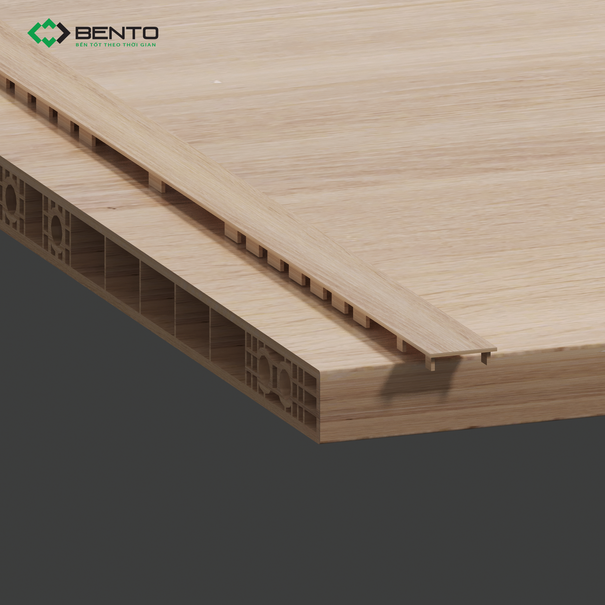 Nẹp bịt đầu Bento có màu sắc và vân đồng bộ với tấm, giúp tổng thể nội thất luôn tinh tế, đồng điệu và chuyên nghiệp.