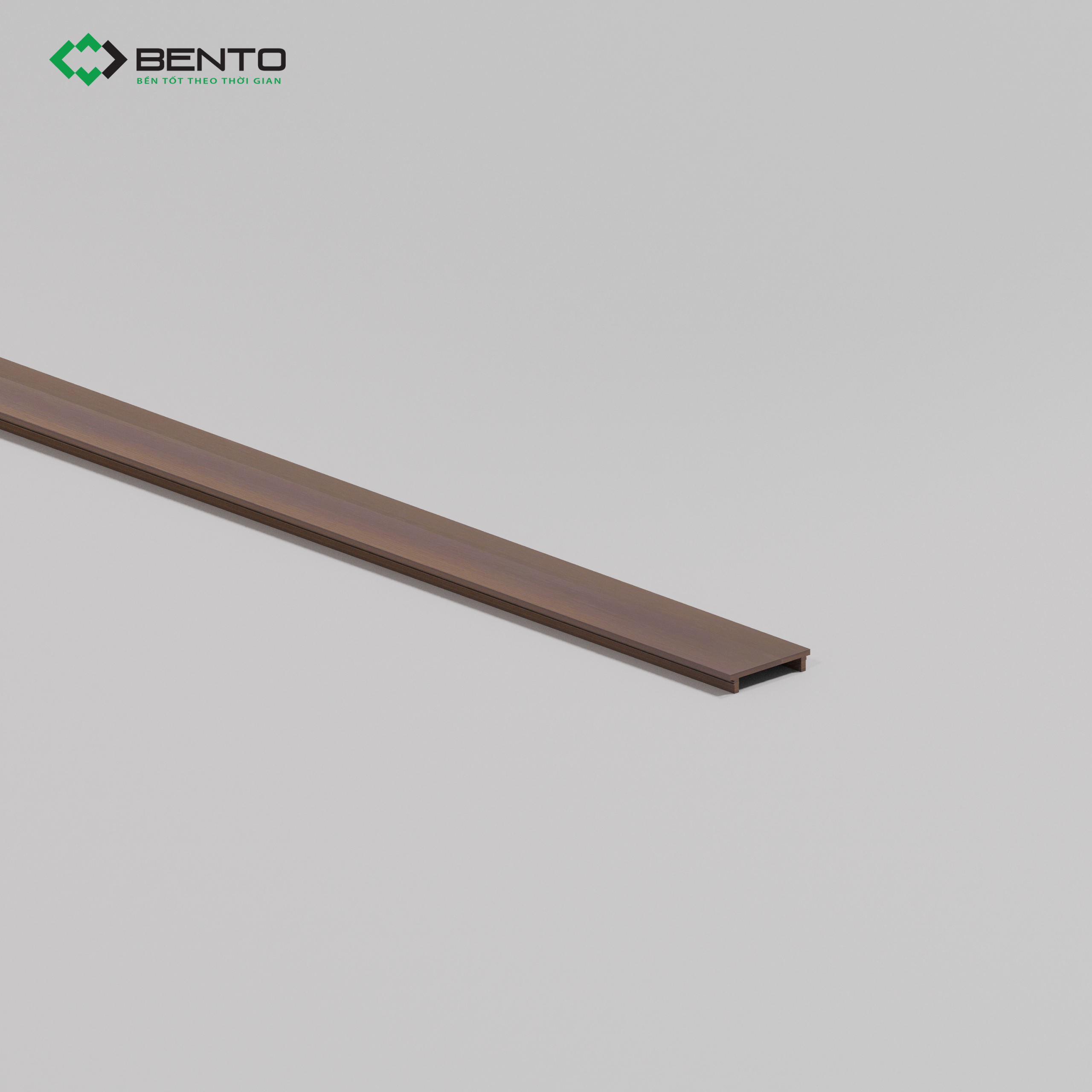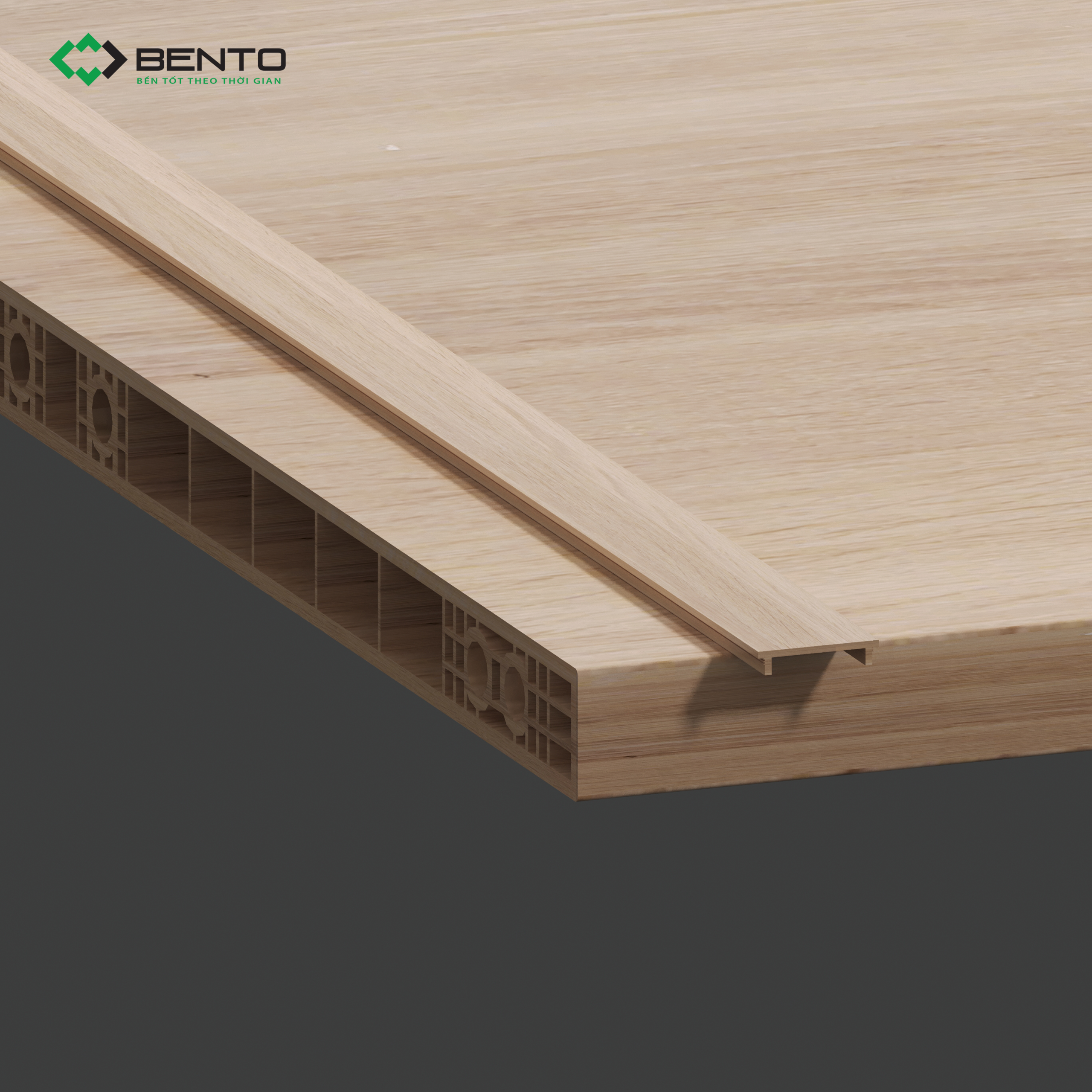 Nẹp cạnh Bento là phụ kiện cần thiết để xử lý các cạnh tấm sau khi cắt xẻ. Khi tấm Bento được cắt nhỏ, phần lõi sẽ lộ ra và mất tính thẩm mỹ. Nẹp cạnh Bento giúp che phủ hoàn toàn phần xương tấm và vết cắt, đồng thời giữ được độ đồng màu – đồng vân tuyệt đối với bề mặt.